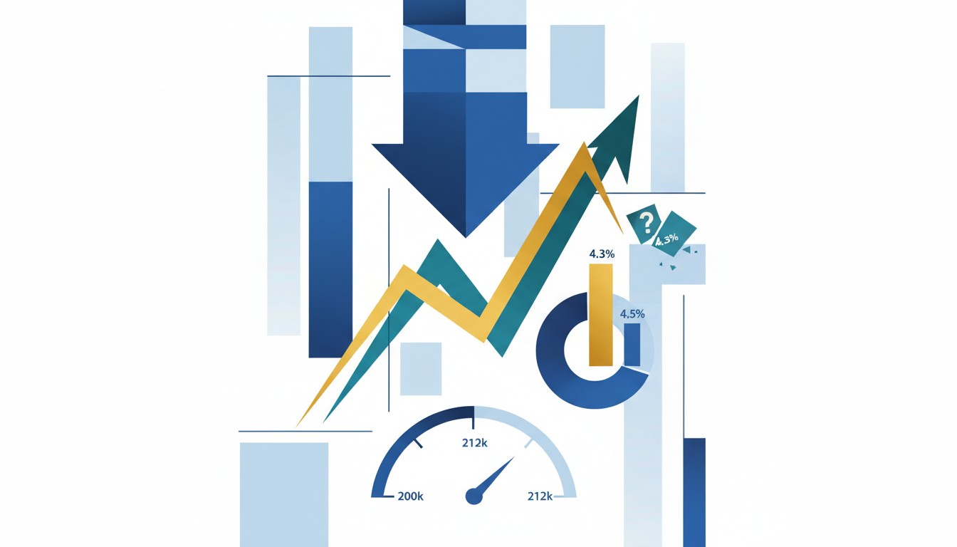Unemployment fell from 4.5% to 4.3% in two months, yet the market prices a 46% chance of a rebound—ignoring that jobless claims just hit a four-week low of 212k.