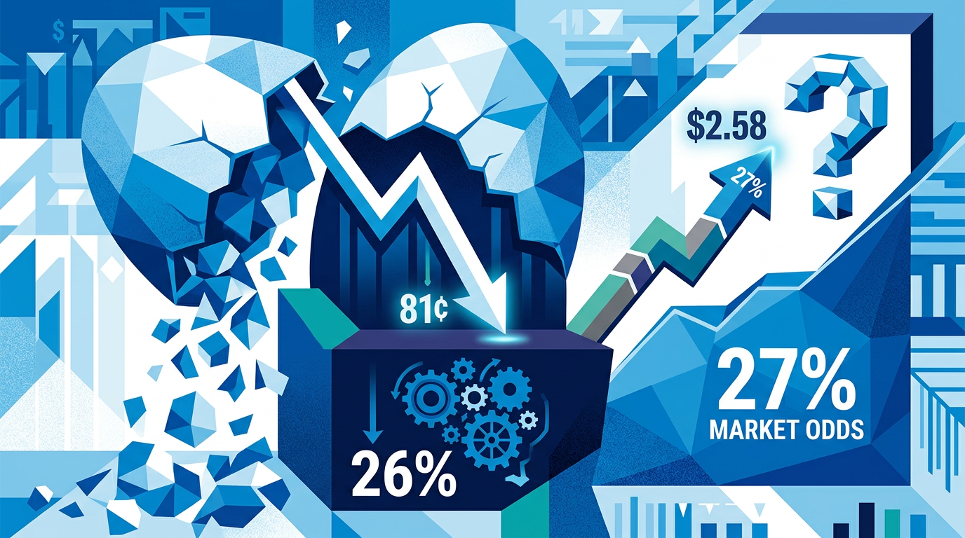 Wholesale egg prices plummeted 26% in February to $0.81 per dozen, creating a massive disconnect with the 27% market odds that retail prices rose above January's $2.58 average.