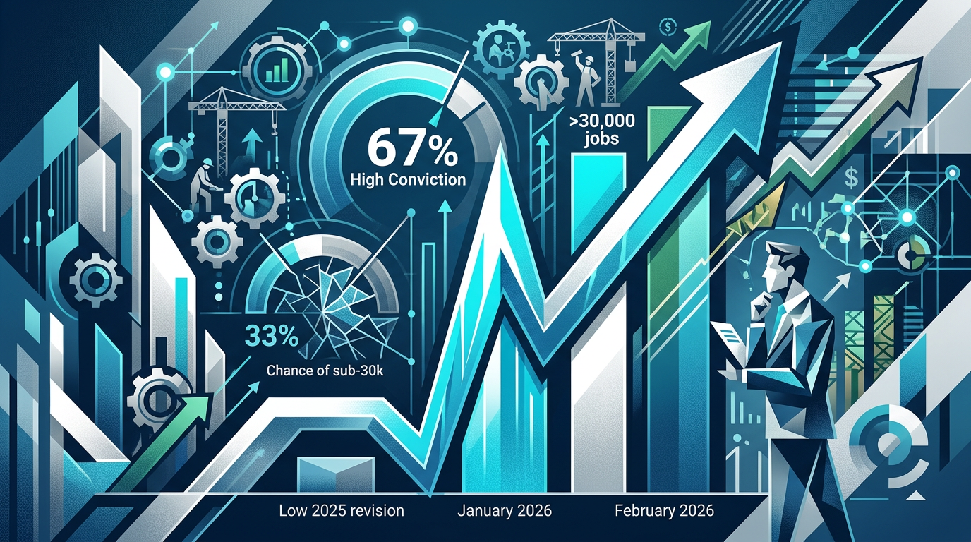 After 2025 was revised down to a measly 15,000 jobs per month, January’s 130,000 surge looks like a breakout, yet markets still price a 33% chance of a sub-30k February.