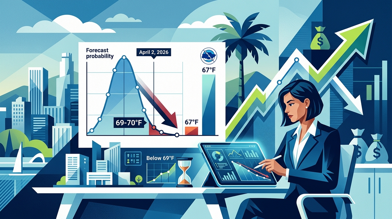 The NWS slashed LAX's Thursday high temperature forecast to 67°F overnight, making the 69-70°F target bin a statistical longshot.
