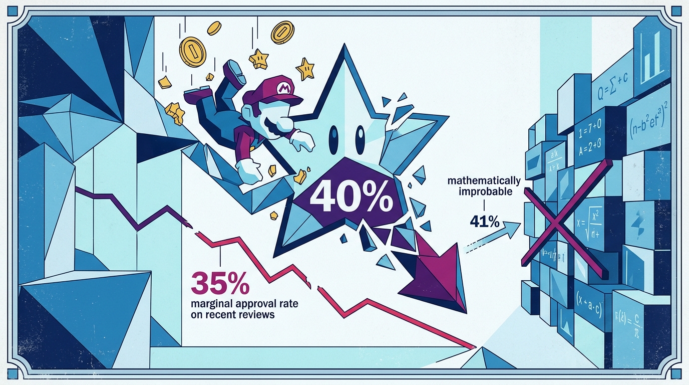 The Super Mario Galaxy Movie has plummeted to exactly 40 percent on Rotten Tomatoes, and with a 35 percent marginal approval rate on recent reviews, a rebound to 41 percent is mathematically improbable.