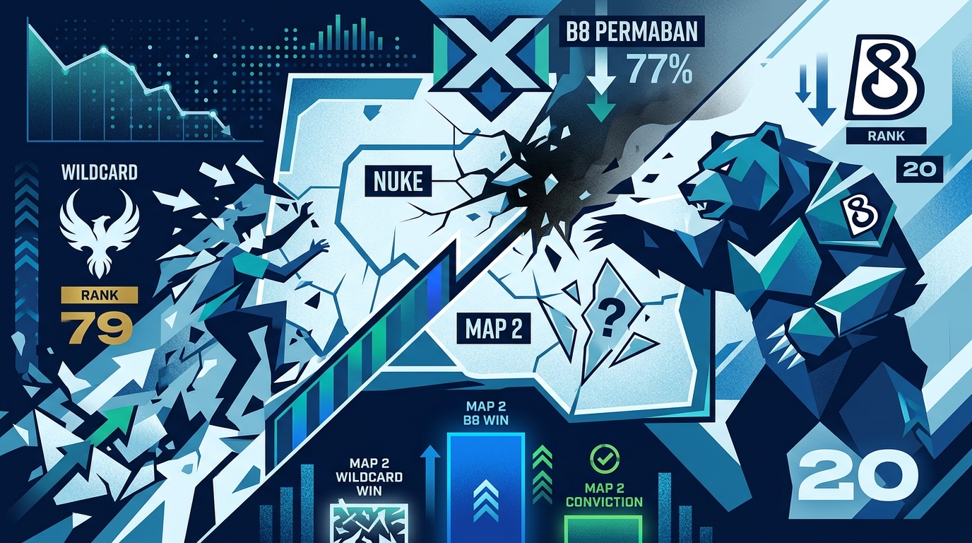 B8 permabans Nuke 77% of the time, instantly neutralizing Wildcard's best map and leaving the 79th-ranked underdog scrambling against the 20th-ranked team in the world.