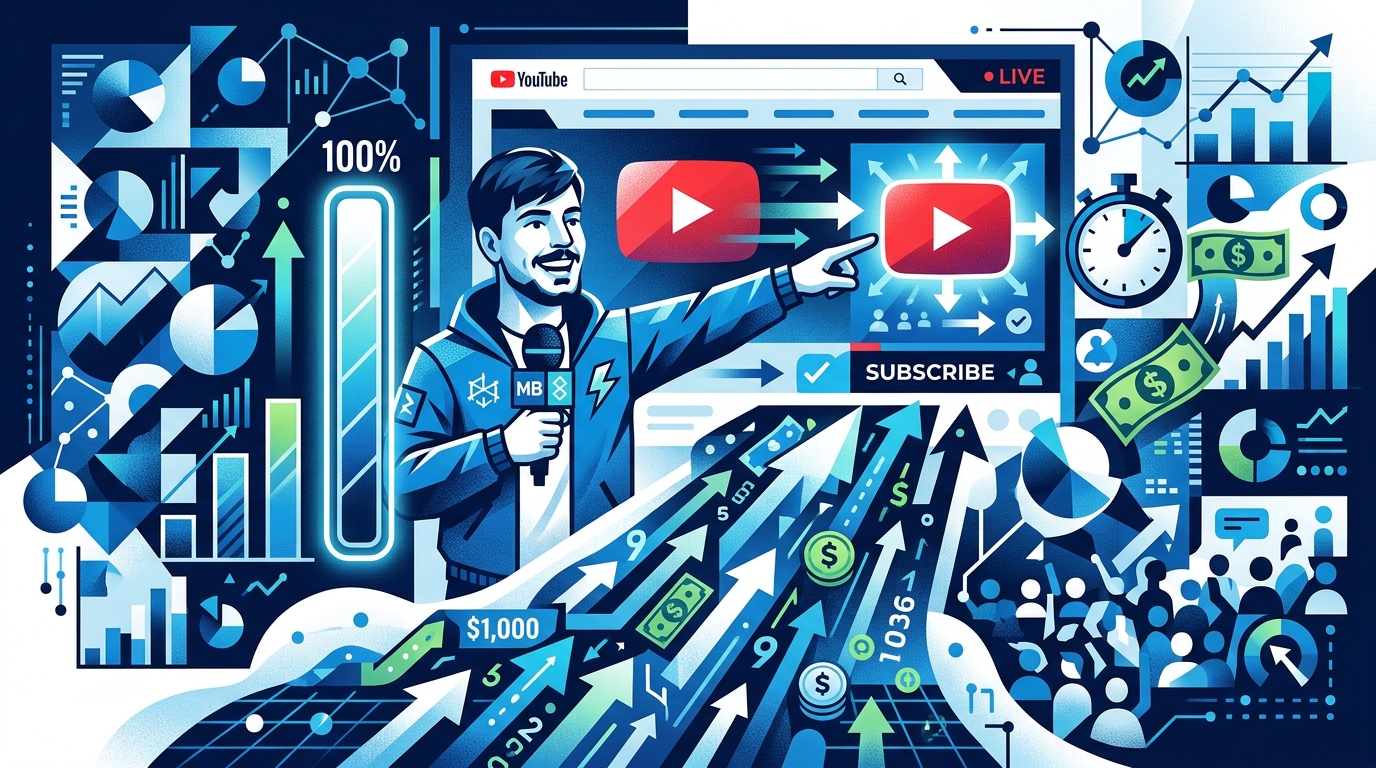 MrBeast is giving away $1,000 every minute during today's massive livestream, making a 'Subscribe' call-to-action highly probable.