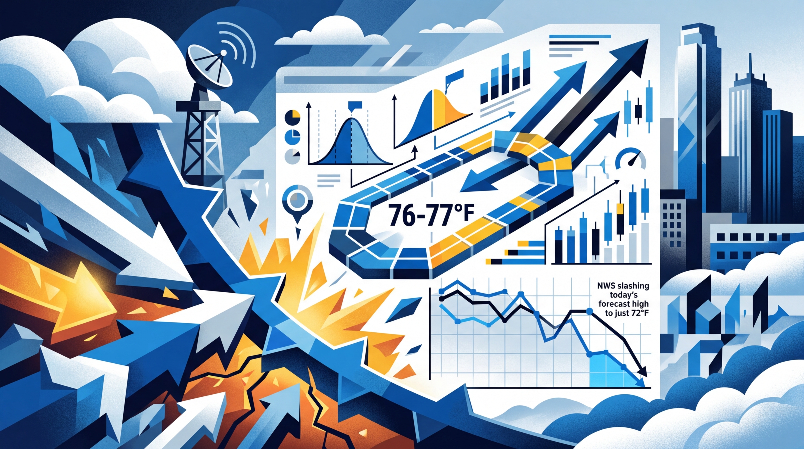 Despite the official NWS forecast sitting exactly at 83°F, an unpredictable afternoon cold front creates a bimodal risk that makes this narrow 2-degree bin highly fragile.